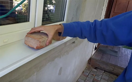 Отливы для окон: специфика выбора, монтаж и другие нюансыЧтобы пена не подняла отлив, прижмите его чем-нибудь тяжёлым.